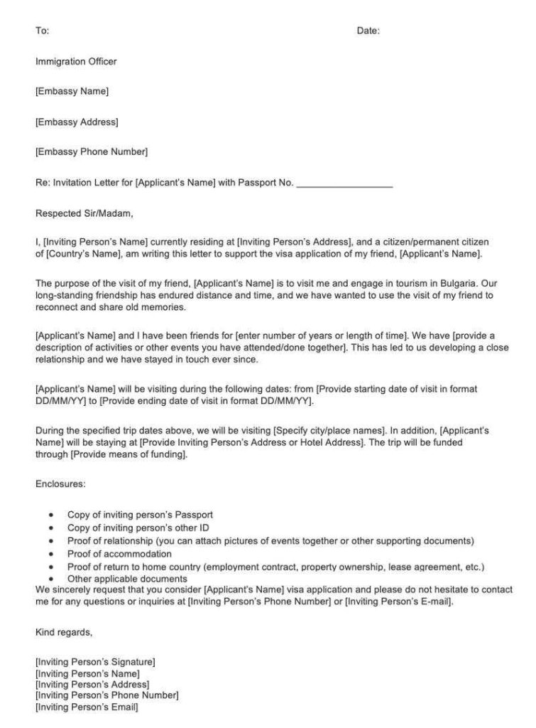 Bulgaria visa invitation letter is one of the documents that foreign nationals who want to go to Bulgaria for the purpose of visiting family, relatives and friends, participating in commercial activities, sports, education and cultural events must submit to the relevant institutions regarding their trip.