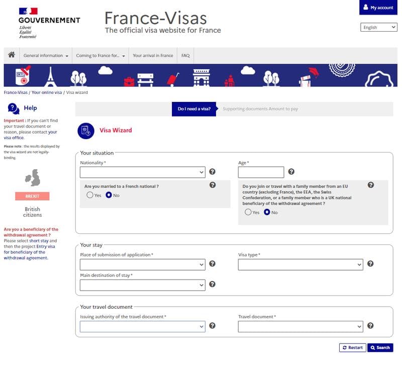 To fill out the France job search visa application form, you must first create an account at https://france-visas.gouv.fr.